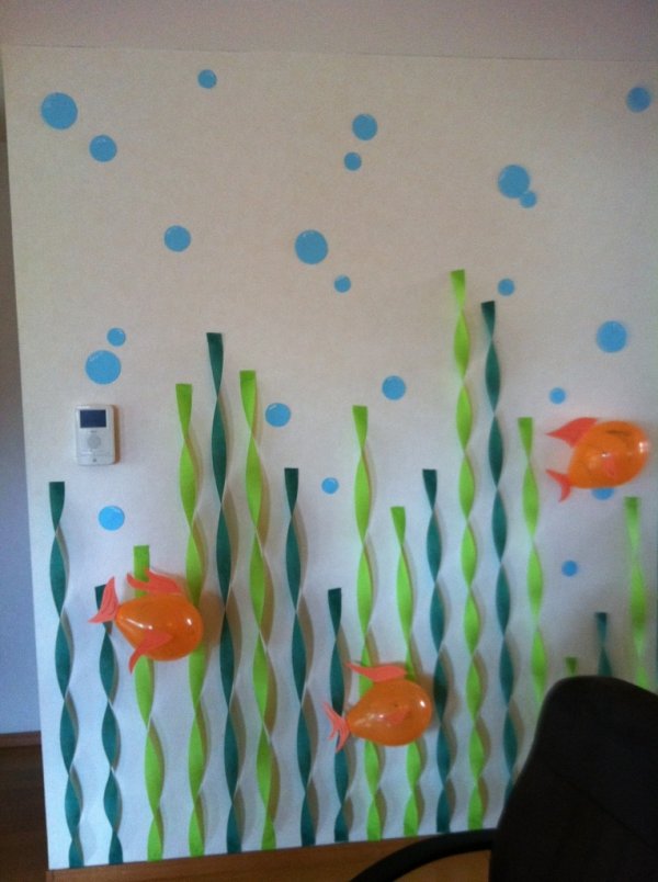 Use streamers in every color to create a fun rainbow on the wall and ceiling.